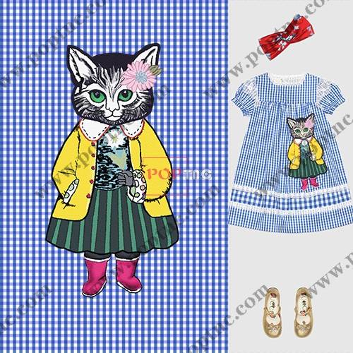 POP花型网 » 卡通动物猫咪印花图案服装裁片T恤卫衣烫图印花花型素材