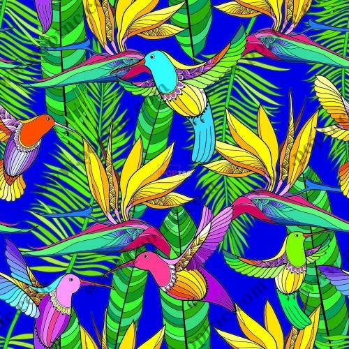 POP花型网 » 植物花卉飞鸟热带风印花图案服装纺织数码印花花型素材