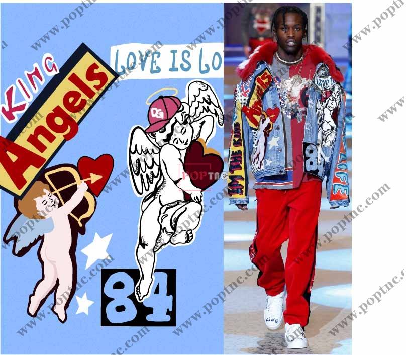 POP花型网 » 卡通动漫天使字母印花图案服装裁片T恤卫衣烫图印花花型素材