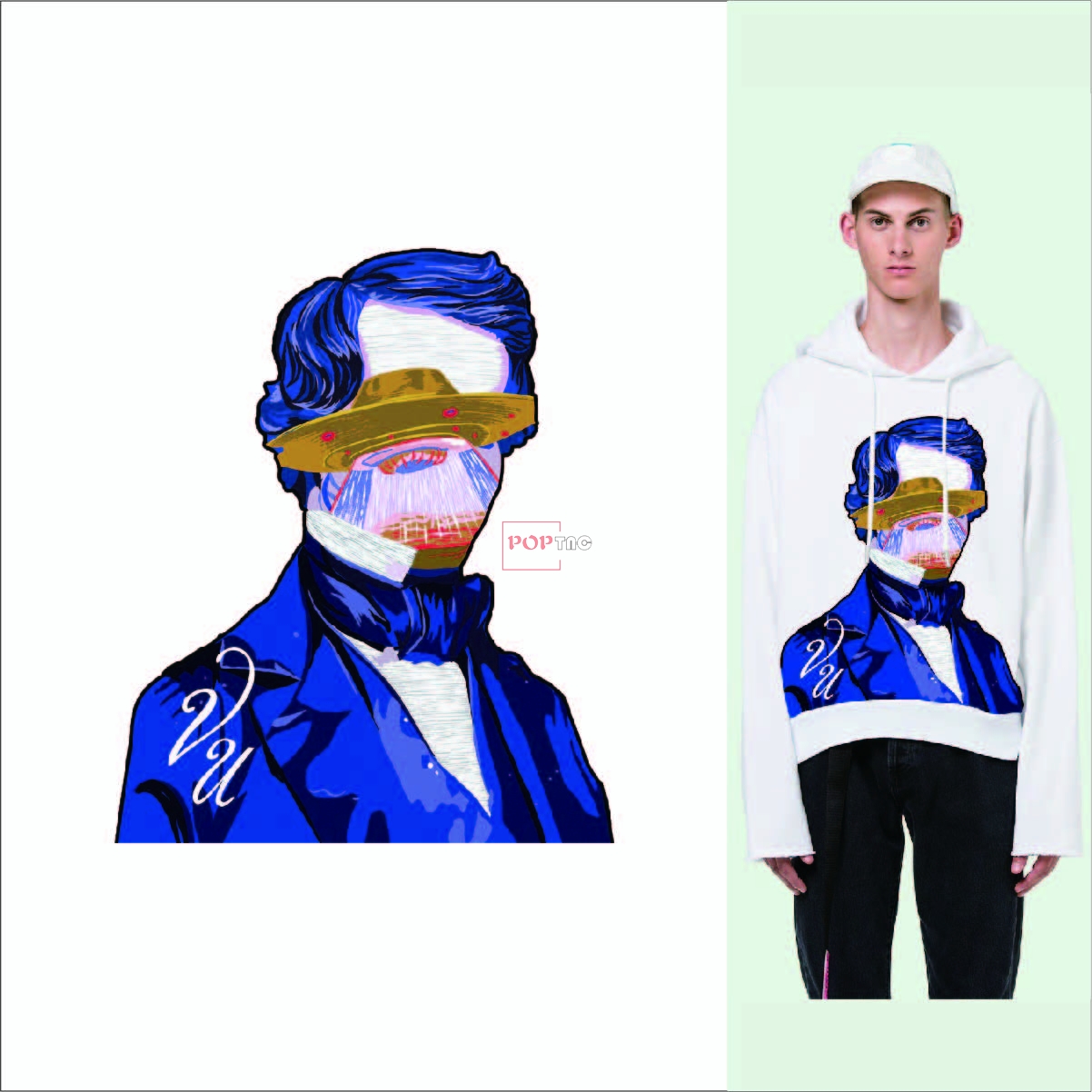 POP花型网 » 人物图案飞碟印花服装裁片T恤卫衣烫图印花花型素材