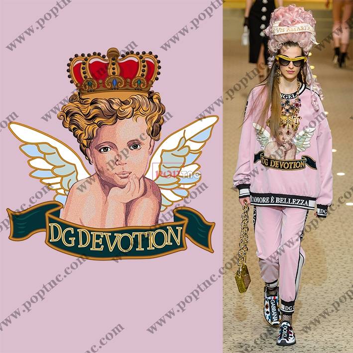 POP花型网 » 爱神丘比特皇冠字母印花图案服装裁片T恤卫衣烫图印花花型素材