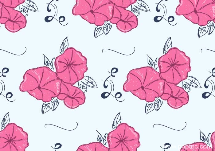 POP花型网 » 粉红色牵牛花拼接印花矢量图