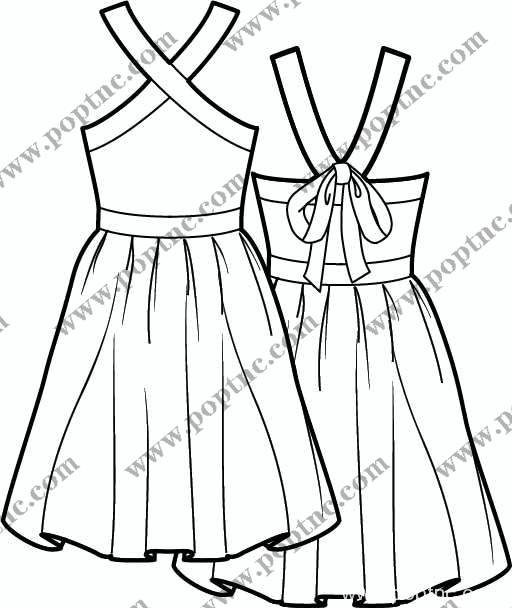 POP花型网 » 蝴蝶结露肩连衣裙设计矢量图