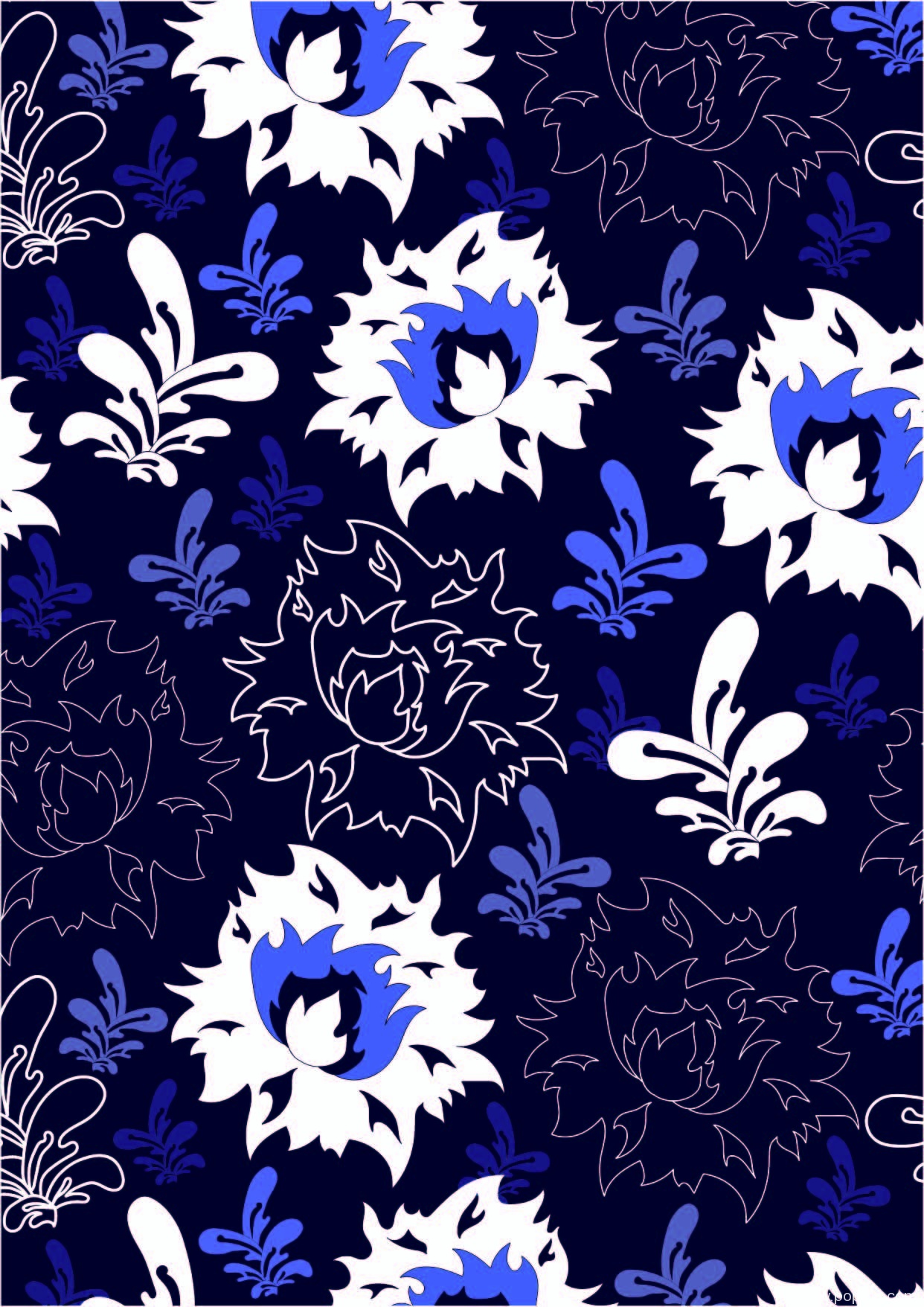 POP花型网 » 宝蓝色底白色大花纹数码印花矢量图