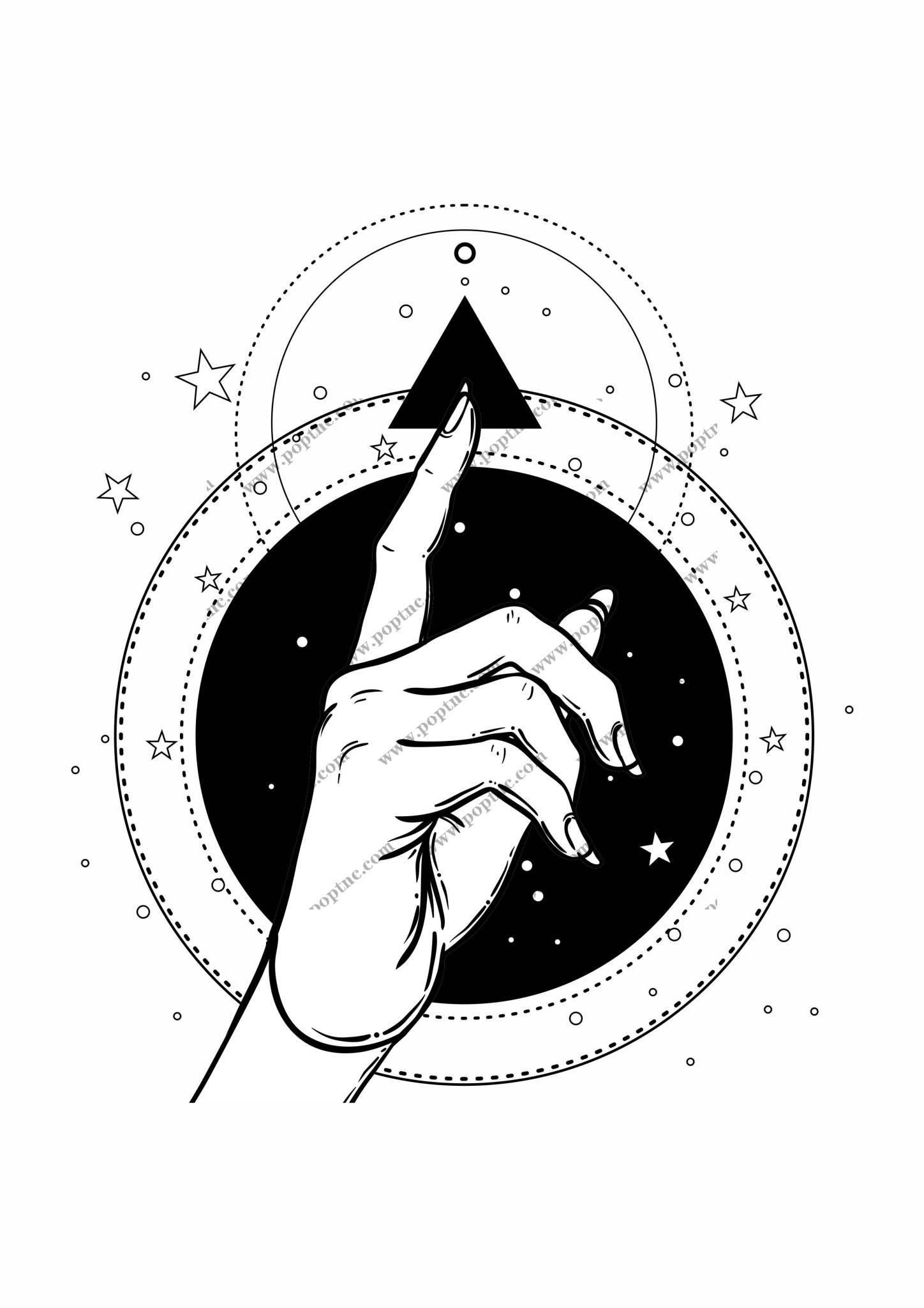 POP花型网 » 几何线条五角星手掌印花图案服装裁片T恤卫衣烫图印花花型素材