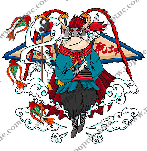 POP花型网 » 国潮牛牛祥云印花图案服装裁片T恤卫衣烫图印花花型素材
