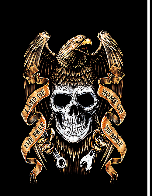 POP花型网 » 骷髅头老鹰字母印花图案服装裁片T恤卫衣烫图印花花型素材
