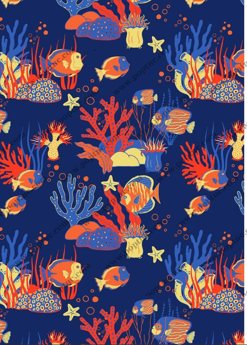 POP花型网 » 海洋风鱼类珊瑚印花图案服装纺织数码印花花型素材