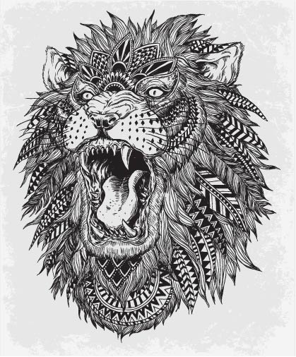 POP花型网 » 动物狮子印花图案服装裁片T恤卫衣烫图印花花型素材