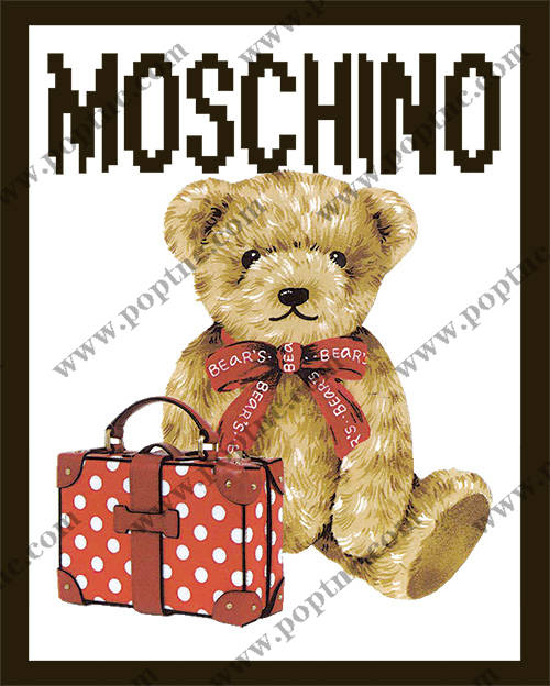 POP花型网 » 字母MOSCHINO图案潮牌熊印花服装裁片T恤卫衣烫图印花花型素材