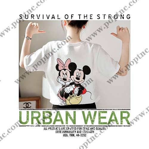 POP花型网 » 女孩人物米奇米妮字母印花图案服装裁片T恤卫衣烫图印花花型素材