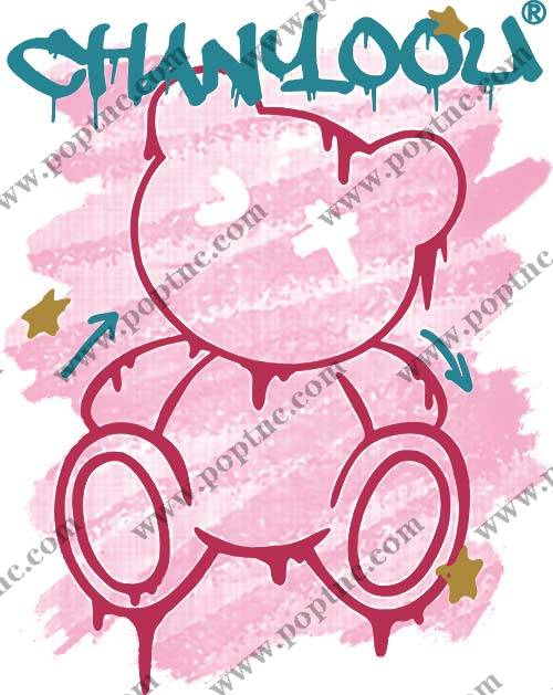 POP花型网 » 色彩涂鸦卡通潮牌熊字母印花图案服装裁片T恤卫衣烫图印花花型素材