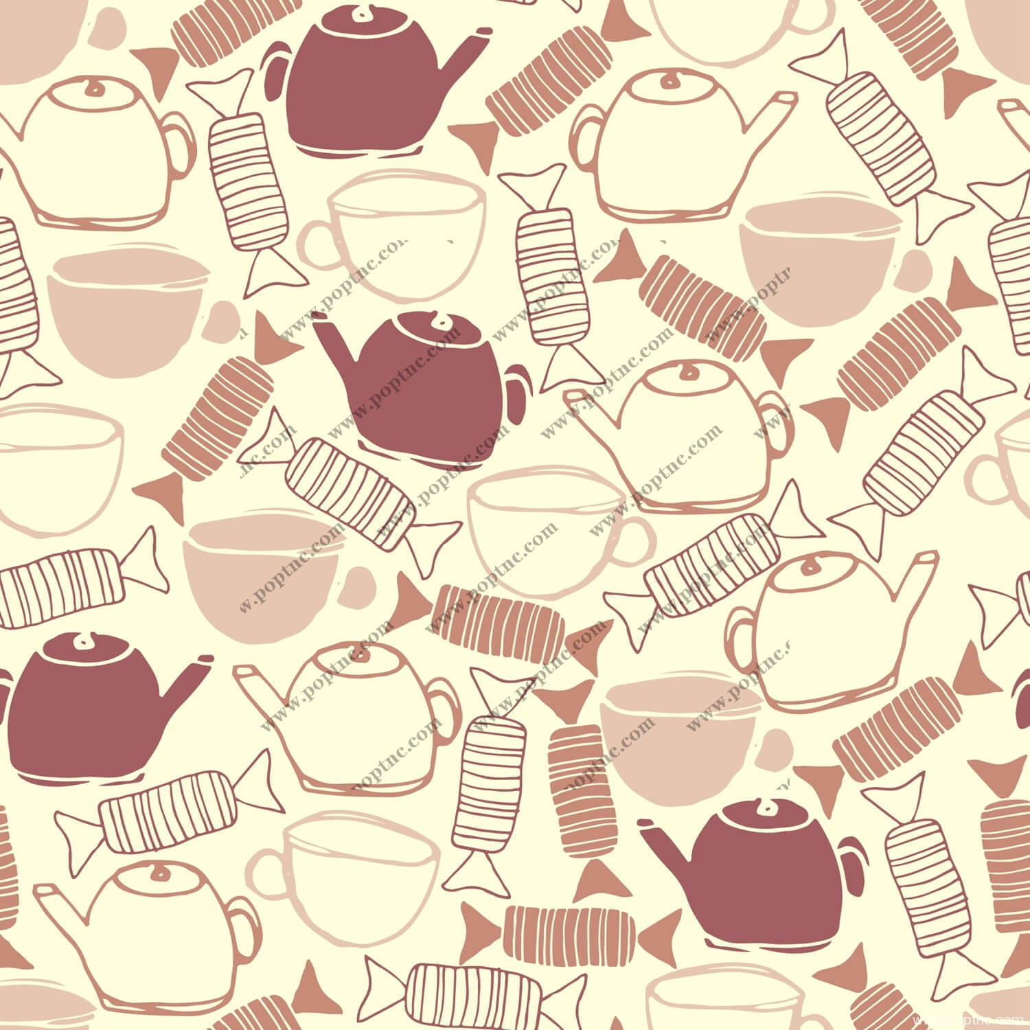 POP花型网 » 手绘茶壶糖果印花图案面料数码印花矢量图