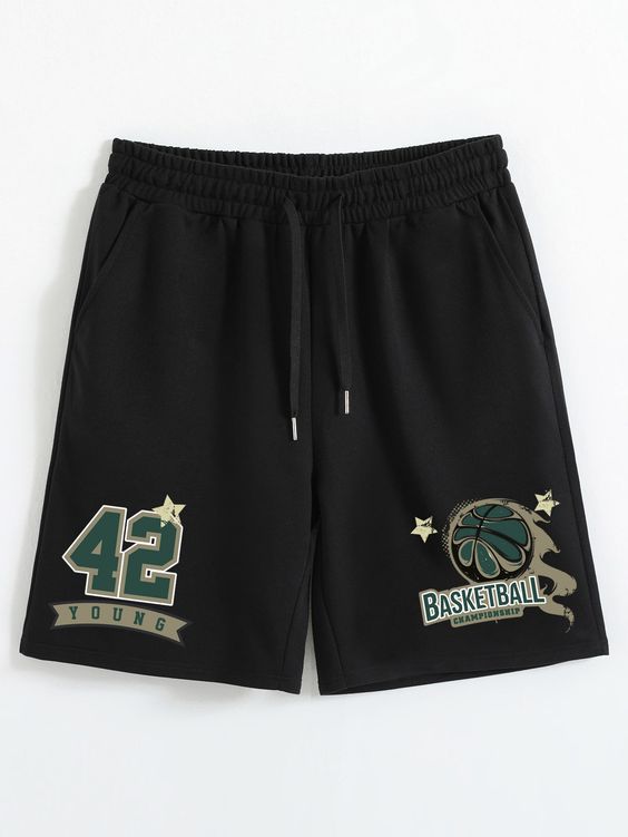 POP花型网 » Black Casual Collar Fabric Letter Track Shorts Embellished Slight Stretch Summer Men Bottoms